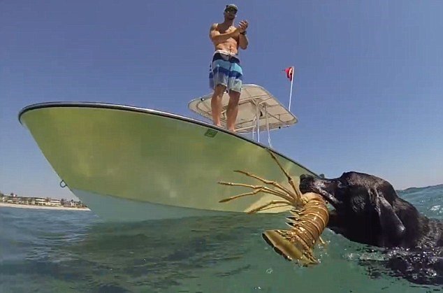 美国小伙亚历克斯舒尔策养了一只聪明的黑色拉布拉多犬。这只名叫“莉拉”的狗能潜入海中,为主人抓龙虾。舒尔策驾小艇带着“莉拉”来到离海岸不远的一处地方停下,指给“莉拉”看趴在水底的龙虾。 “莉拉”一跃跳入水中,头朝下,四条腿迅速划水,然后一口叼起龙虾,浮上水面,向主人游去。舒尔策把这个过程拍摄下来放到网上分享。