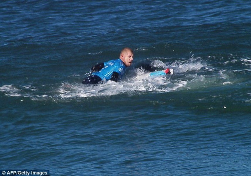 现年34岁的米克·范宁被称为“白色闪电”,是澳大利亚的冲浪传奇,他分别在2007、2009和2013年ASP世界巡回赛中赢得冠军。在这次事件中,他表示,“我感觉什么东西被我冲浪板的绳子卡住了,我踢了几下没有踢开,然后我看到了一个巨大的背鳍……我等着鲨鱼的牙齿向我咬来,然后用冲浪板戳它的后背。”