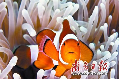 为什么沉迷于水底摄影?看着一幅幅让人感慨大自然精彩的照片时,很多人都会问罗春广这样的问题,“因为水底摄影最大的魅力,就是不可复制。每张照片都不可复制,都有背后的故事。例如沙丁鱼风暴,是个很偶然的现象。也只是这几年才会有大批沙丁鱼在菲律宾海域聚集,只要打一次台风,就吹散了。我等了好几年才等到这个机会。当你跳入海中,即使只是在水面下几米,就有10多万条沙丁鱼组成像巨大的风暴一样的鱼团,这样的景观,是世界独一无二的。”每张照片背后都有故事。被《孤独星球》杂志收纳的一张,是他在红海中拍摄潜伴和巨大的苏眉鱼的互动,他一直记得那个珍贵的时刻,“在20米上升途中我和潜伴见到下方超大的苏眉鱼,我们迅速下潜到30米,其实这在潜水中是很冒险的事,我当时氧气已经快用完了,拍摄完还得慢慢上浮。但这难得的‘冒险’,把这人鱼互动的情景永远地记录了下来。通体铁蓝色并长着凸出嘴唇的成年苏眉鱼,身长能超过2米,体重可达190公斤,寿命超过30岁,是世界上最大的珊瑚鱼类及濒危物种。”而且拍多了,罗春广感受到,“鱼其实和人类是有交流的。我不喜欢只拍景色和鱼,我喜欢照片里有人和鱼在一起,你能感觉到那种情绪的流动。”他说小丑鱼是水底摄影师的最爱,每条小丑鱼都有自己的情绪,特别亲人。“也有例外的时候,它们会保护自己的家园,尤其是产卵期,不小心靠近了,它会驱赶你。”