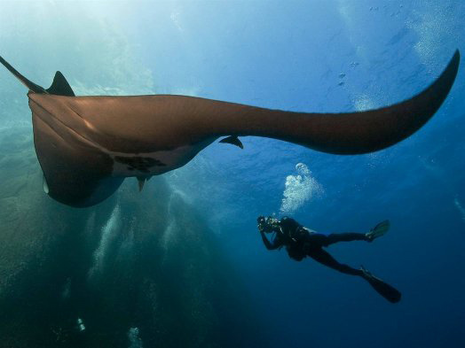 巨大的魔鬼鱼在经认证的海底水肺潜水员和浮潜员面前旋转跳跃,献上一场精彩的演出,如芭蕾一般优美的令人难忘。魔鬼鱼经常游到距潜水者很近的地方,总是能在最后一秒避免接触到潜水者。近距离接触这些魔鬼鱼,真的是令人一生难忘的体验。